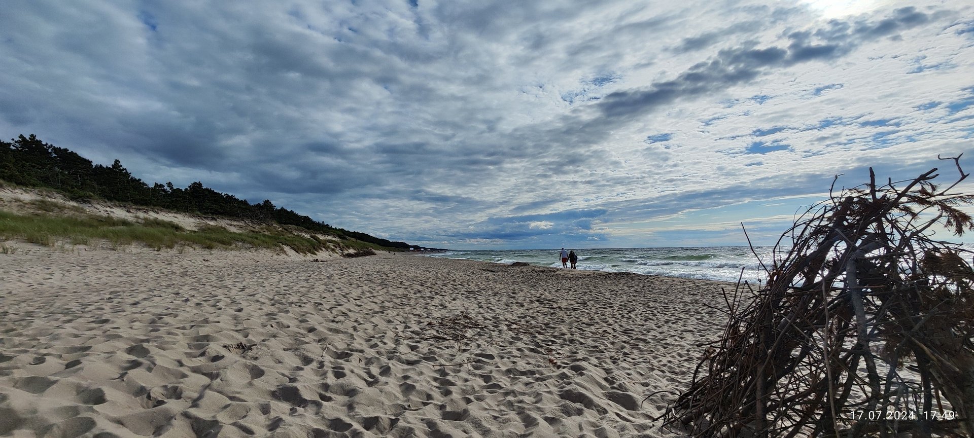 Nawet w szczycie sezonu można znaleźć spokojniejsze fragmenty linii brzegowej. Brak zwartej zabudowy przy samej plaży powoduje, że wejścia są równomiernie rozłożone, a tłok nie kumuluje się w jednym miejscu.